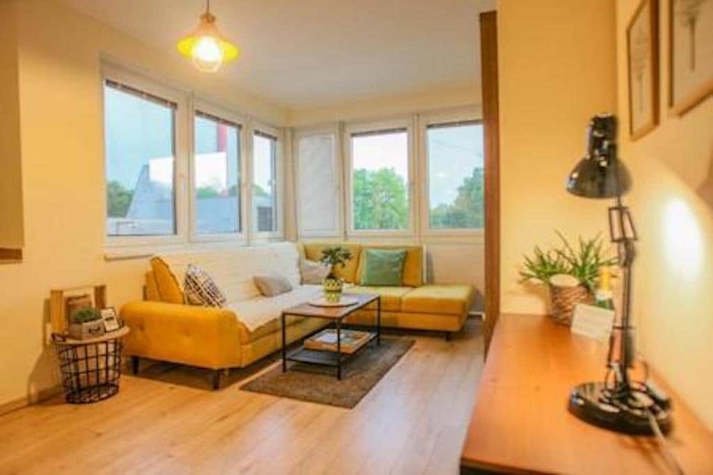 Spacious, modern and bright 84m2 apartment with a balcony and own parking, located opposite a train station with regular trains to Vienna. The location is ideal for exploring Bratislava and the city centre as its only less than 10 minutes by bus. It is also an ideal stopover location for those travelling around Europe.