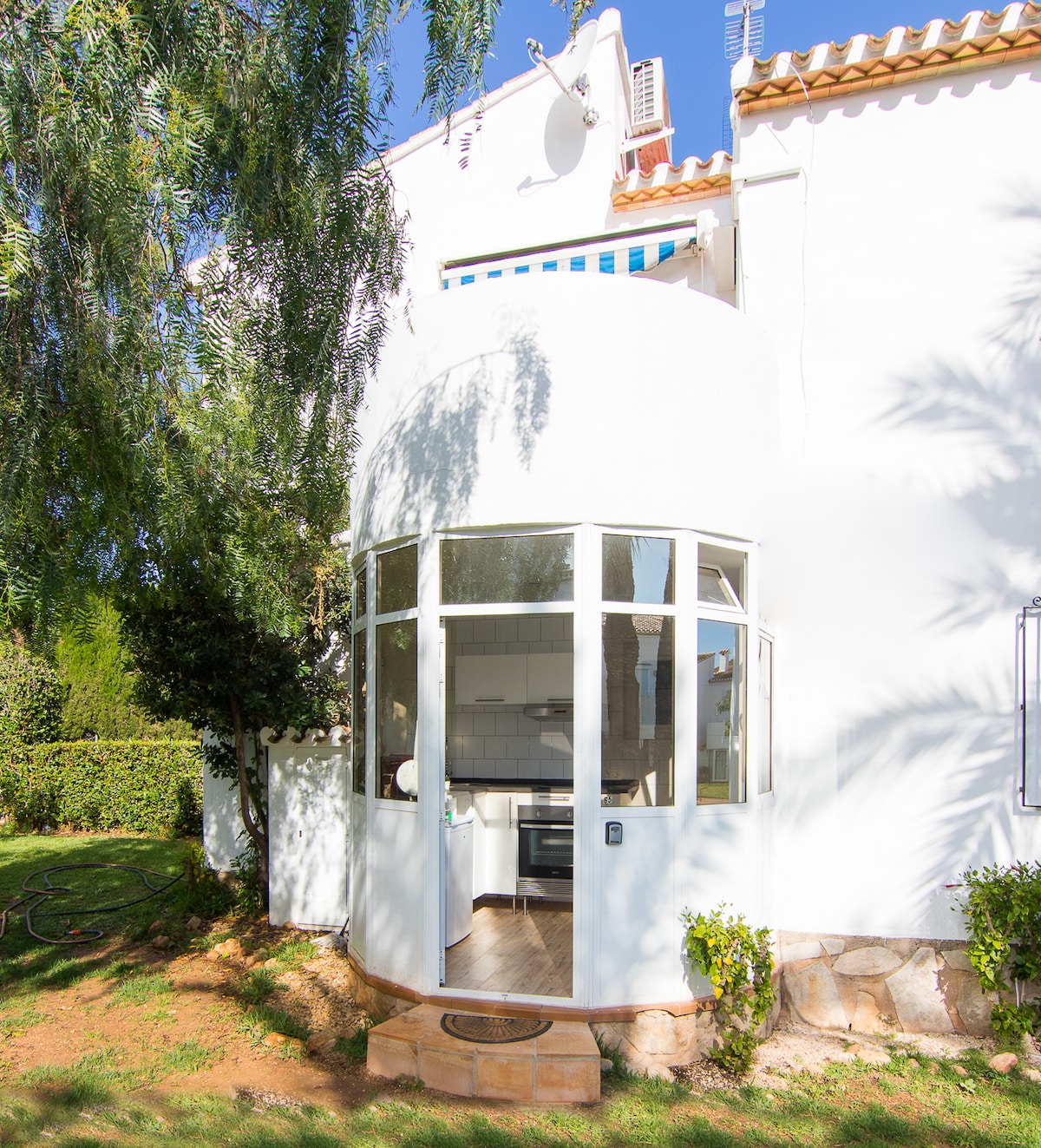 Located in a peaceful area just 1 km from the sea in Las Rotas, this townhouse is perfect for relaxing. Spread over three floors, it features spacious areas and two terraces with stunning sea views. The ground floor has a renovated kitchen, guest toilet, cozy living-dining room, and a terrace. Upstairs are the bedrooms and a full bathroom. The basement includes a living area with a double bed, a bathroom, and a space with a fridge and washing machine.