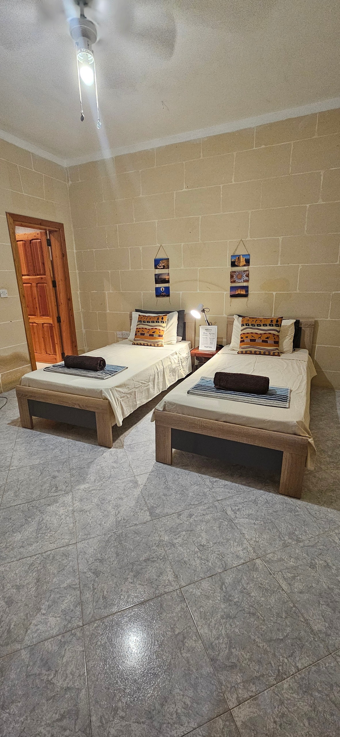 Romantic quiet accommodation full with original features . has it own private sunny modern bathroom, cozy equipped kitchen, very nice dining and sitting , quiet bedroom with a comfortable double bed . own sun terrace facing south with sunbeds and table and chairs ideal to eat out All furniture are from natural wood. local good restaurant , supermarkets, frequent bus connection are 5 minutes walk. the beautiful sandy of Ramla bay is also walking distance. licensed by MTA.
