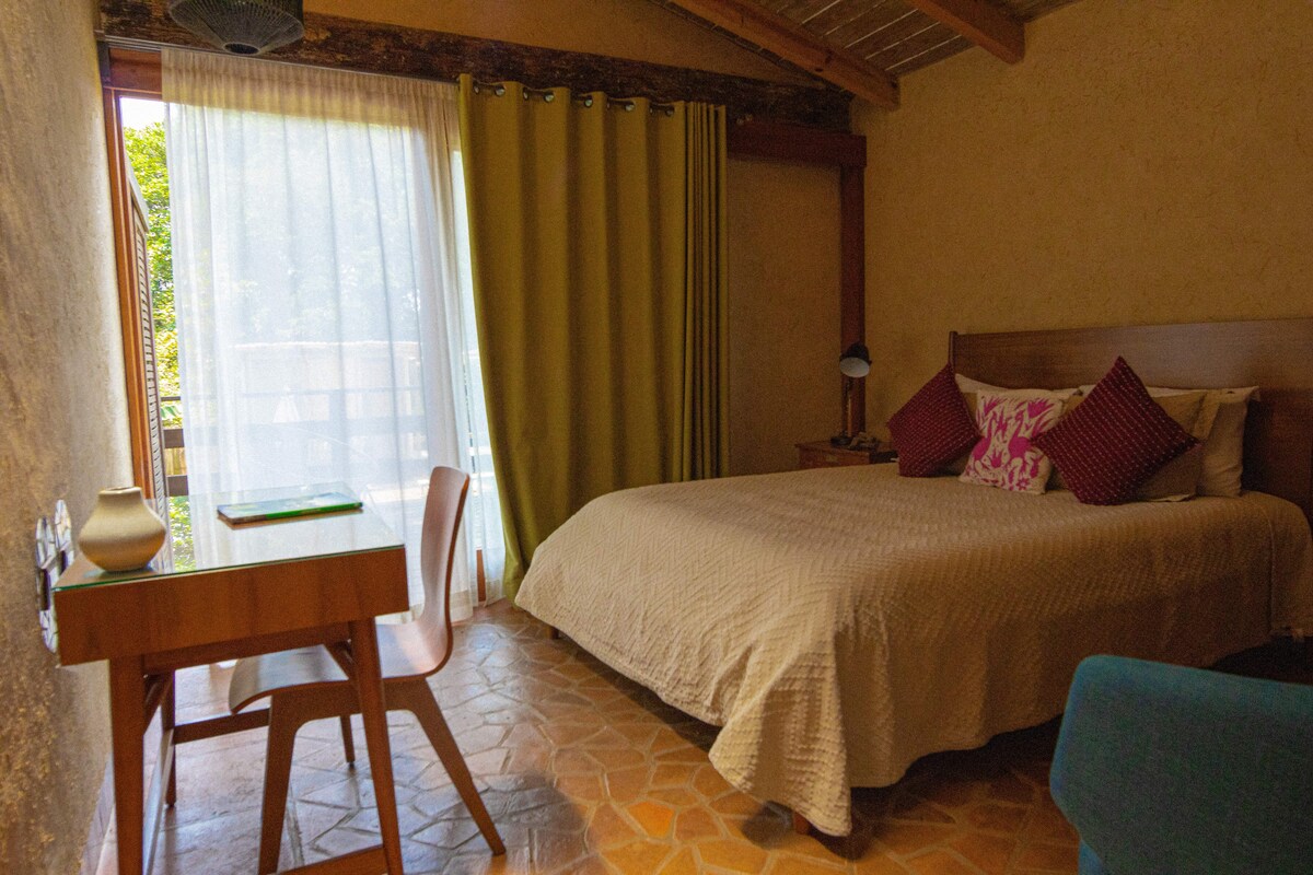 Casita vintage en planta alta tiene disponible una recámara, un baño exclusivo para usted, sala, comedor y cocina con refrigerador y estufa compartidos. Desayuno básico está incluido. Muy cerca de la casa encontrará mini súper, panadería, lavandería, cocina económica, verdulería y más. Además, estarás a 5 minutos en auto de la Iglesia y Mercado San José y del Callejón Jesús te ampare y a 10 minutos del centro histórico. En esta propiedad no contamos con elevador.