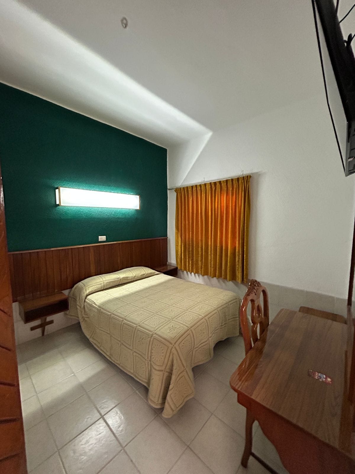 Habitación sencilla, cómoda y práctica. Cuenta con Wi-Fi, baño completo privado, smart TV, teléfono, armario y espejo. También puedes solicitar plancha si la necesitas. Incluye estacionamiento privado sin costo Se encuentra en tercer piso. Ideal para viajeros que buscan una estancia práctica, bien ubicada y con los servicios esenciales. Hotel Citlalli Xalapa, cerca del centro histórico, caminando encontrarás una gran variedad de cafeterìas y lugares de interés.