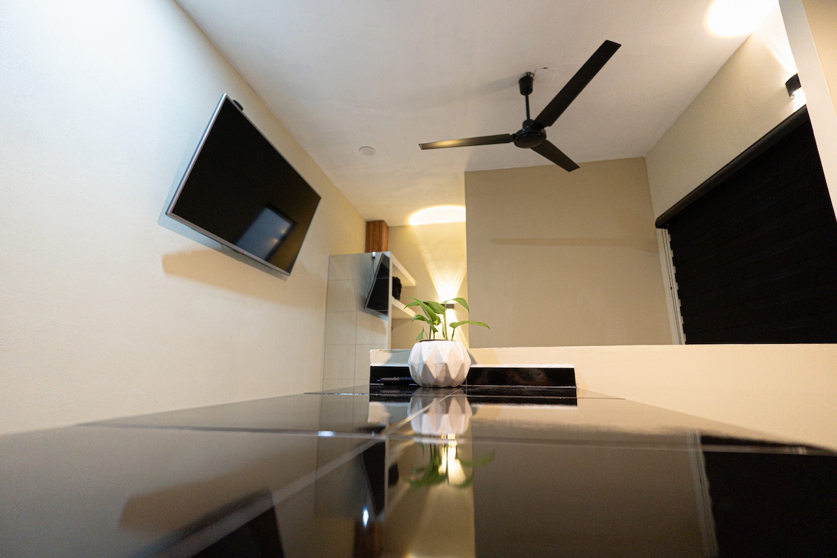 Disfruta de la sencillez y la comodidad en este espacio tan tranquilo y elegante; cuenta con Minisplit, comedor, cocineta, estufa, refrigerador y baño completo totalmente independiente. Wifi Gratis.