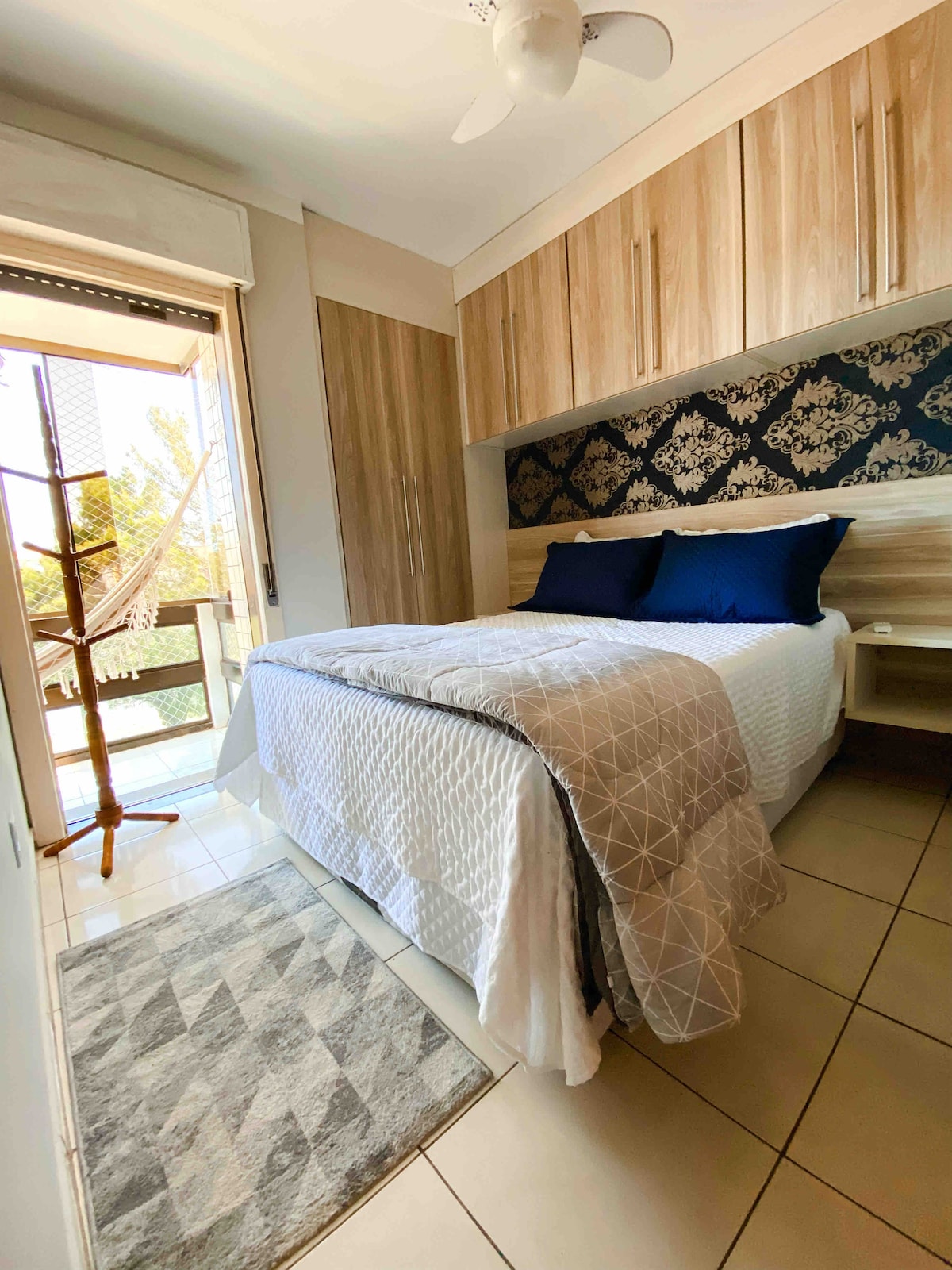 Apartamento novo, no bairro Navegantes, a três quadras do mar. Cama box tamanho Queen no quarto e sofá cama de qualidade na sala. Lava-roupas (lava e seca). Aquecedor d'agua de passagem, com excelente pressão. Água quente nas torneiras da cozinha e do banheiro. Churrasqueira. Garagem com controle remoto (box). Portaria 24h, piscina (por agendamento), salão de jogos, academia. Próximo a bons supermercados e restaurantes. A duas quadras da Paraguassu, junto a Avenida Ubirajara.
