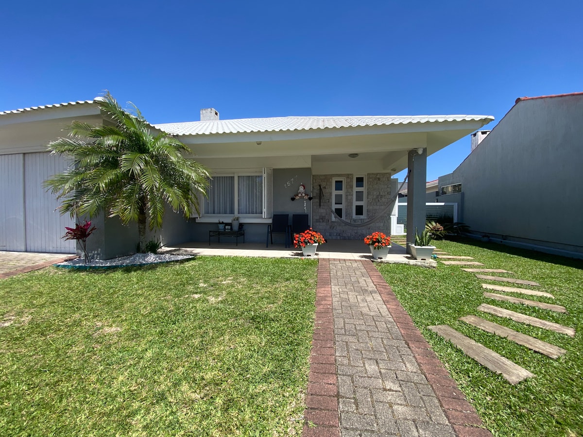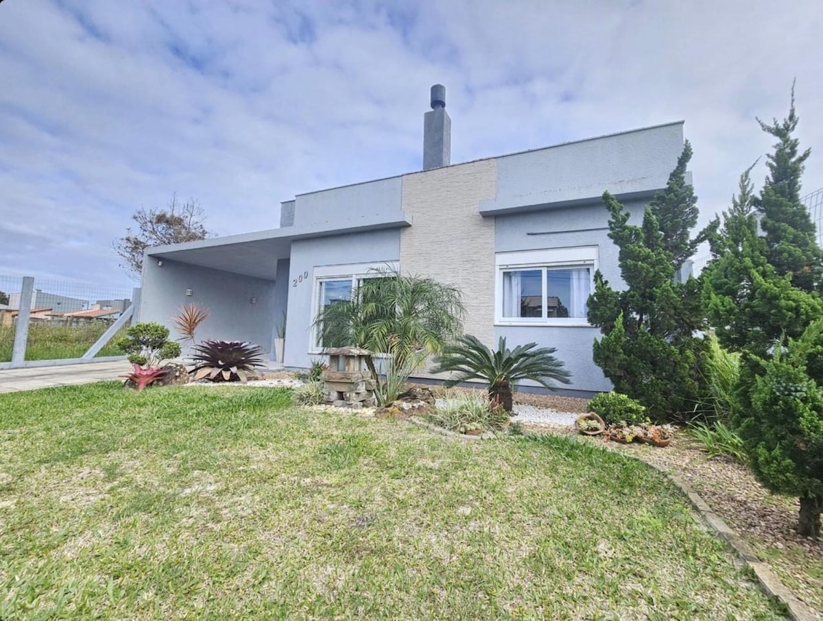 Casa com piscina, 2 quartos, sendo 1 suíte, ambos com ar-condicionado. Sala de estar aconchegante integrada com jantar. Cozinha completa com todos eletrodomésticos e utensílios. Lavanderia com máquina de lavar. Quintal espaçoso ideal p/ famílias. Localizada na entrada de Atlântida a 3,2 km da beira mar (6 min de carro), 3 min do Ramblas. Duas quadras de mercado, padaria e açougue. *Informe a quantidade exata de hóspedes ao fazer a reserva!