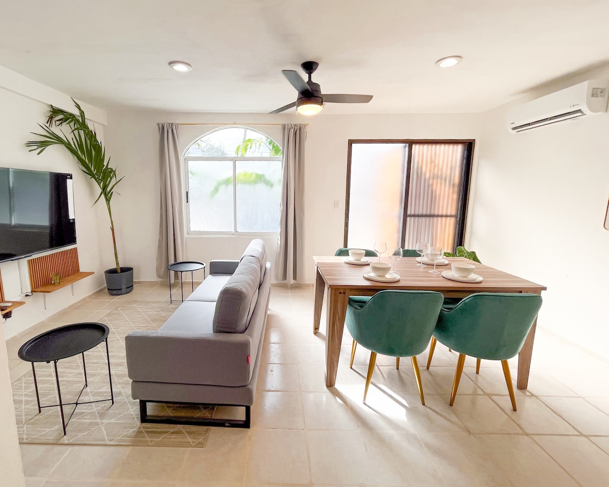 ★ READY FOR APRIL 2026 ★ ❗️PLEASE READ EVERYTHING❗️ New building uniquely situated on 5th Avenue in Playa del Carmen (away from crowds), about 200 meters / minutes walk to the Beach. Great for groups/couples. ➤ Surrounded by restaurants & entertainment ➤ Steps from 5th Ave & Beach ➤ Walk Score 92/100 close to everything ➤ Private Pool Sun lounging/Grill/Dining area ➤ 3 private balconies ➤ Elevator ➤ Rooftop pool ➤ Equipped Kitchen ➤ Dining for 6 ➤ Washing machine ➤ Please keep reading below👇