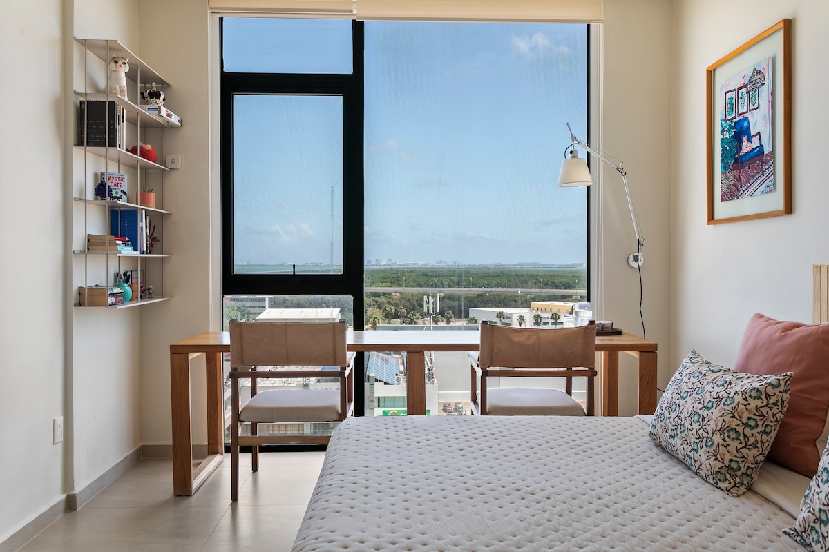 Beautiful Luxury apartment in Puerto Cancun, Hotel Zone, the most exclusive area of ​​the city. Located with a beautiful view of the turquoise blue waters of the Caribbean Sea. Decorated in every detail, your stay will be very pleasant. It has all the necessary services, private parking, access with code and an enviable location! the condominium is connected to the Marina Puerto Cancun Shopping Center and you can walk down to find restaurants, shops, entertainment, etc.