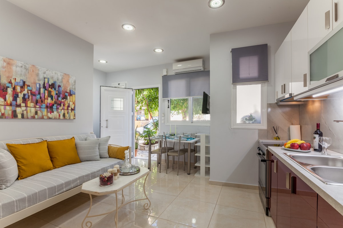 Our house is an elegant and cosy apartment in a quiet neighborhood close to the city center of Heraklion. All its equipment and decoration are modern and brand new, chosen from us with love, care and style, so it can offer the visitor comfort, aesthetic simplicity and relaxation. Its location helps the visitor to use it as a "spot" to discover our city (10 min walk to the city center) as well as our beautiful island. It is ideal for couples, families, groups of friends and business travelers.