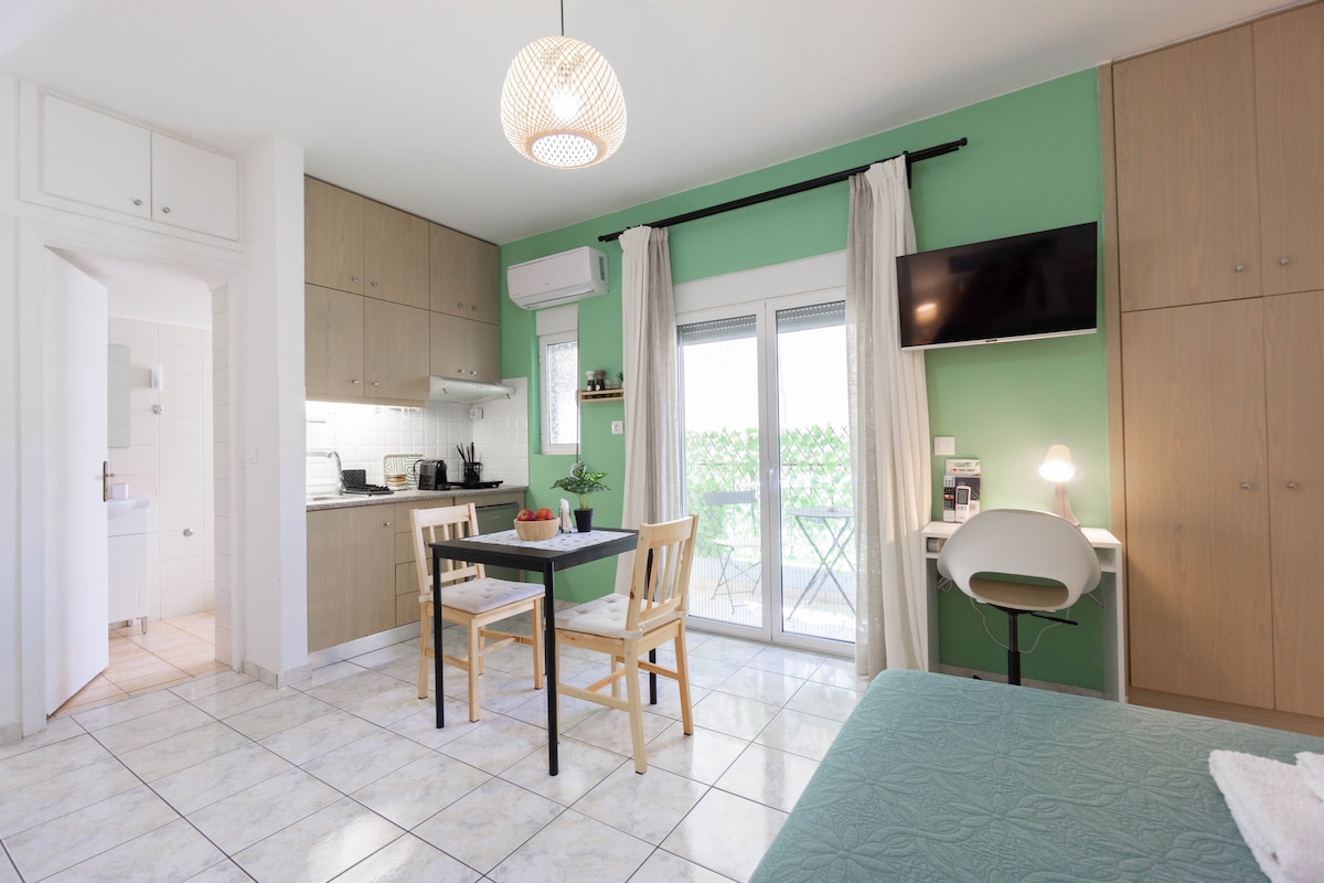 Blue & white studio where you will have the chance to live in a home just 50 meters from the shore. Relax by breathe in the salty air of the Aegean Sea. The studio has all these shades of blue & white that offer place for relaxation and meditation. You are in the city without feeling the city. Super markets, restaurants, cinema, shops, medical center, bus station are only 5 minutes walk. A house easily accessed with public transportation from port/airport.
