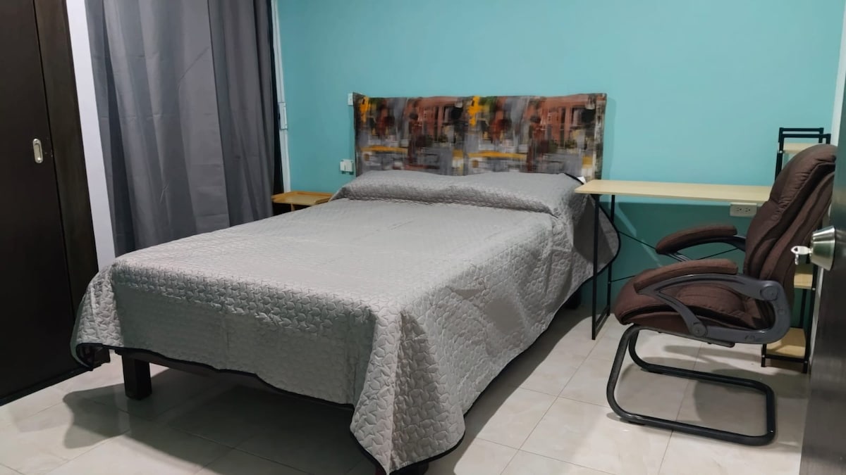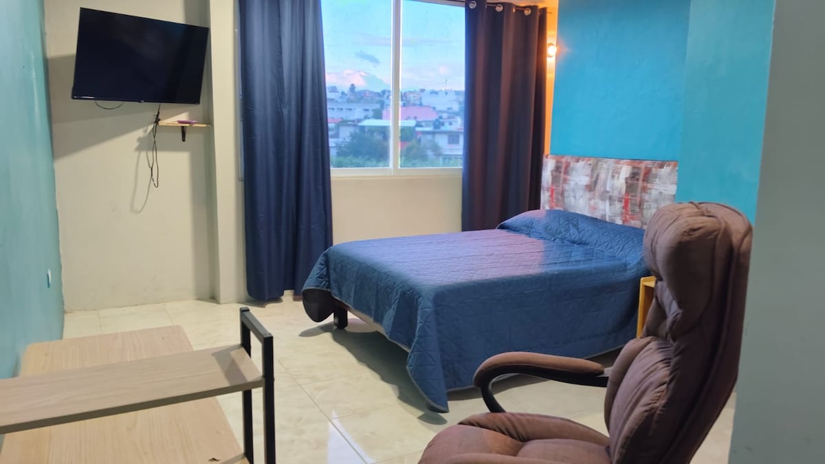 Relájate con tu familia en este tranquilo departamento que cuenta con una terraza privada exclusivamente del departamento al igual que un centro de lavado, tres tv con Megacable, caja de seguridad, sofá cama y colchonetas etc. Se encuentra situado en un cuarto nivel con una linda vista a 10 minutos del centro de Xalapa en un barrio muy tranquilo