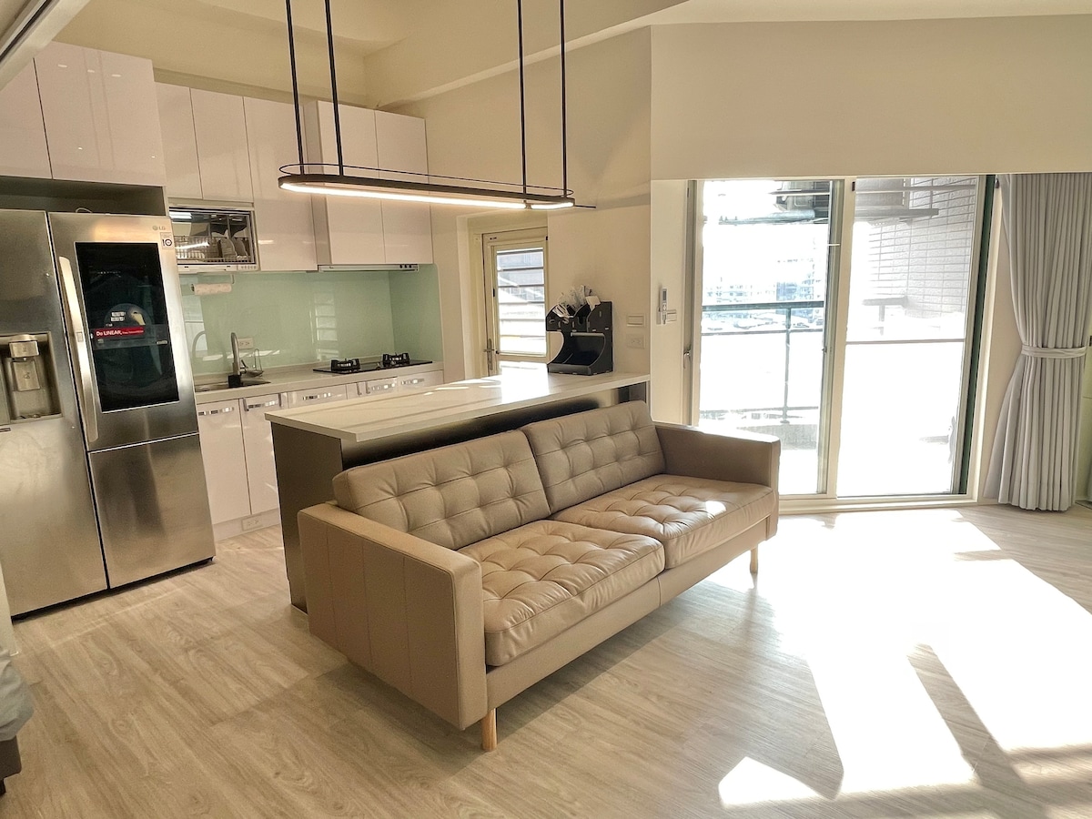 中和景安MRT步行15mins 門口就是公車站,多部公車坐到景安捷運站,乘坐「橘5」可直接到景安捷運站門口完全不用步行,旁邊有付費停車場 大露台11樓後棟安靜,3米6夾層中島黑玻風 附LG敲敲門冰箱(製冰機) 附智能開飲機(水龍頭即能冷熱飲) 附62吋電視(Netflix),提供WI-FI I 氣炸烤箱,微波爐,Dyson吸塵器 洗衣機1台,烘衣機1台,請避免兩台同時使用會跳電 1間衛浴附溫泉式浴缸,浴缸很深老人家若覺得危險不建議預定 室內15坪,陽台2坪 2人入住,1張標準雙人床 多1人一天多加NT$1200(提供鋪在地板上的單人床墊) 室內禁煙(大樓規定陽台也不行) 若使用uber eat/foodpanda會送到1F 大廳的桌子上再下樓自取 機場巴士1968 可以到景安捷運站(大約1小時) 機場坐taxi過來40-60 mi 不好意思因為住房每天都是滿的,提早check in and 晚一點check out會影響前後客人所以無法提供喔🥹