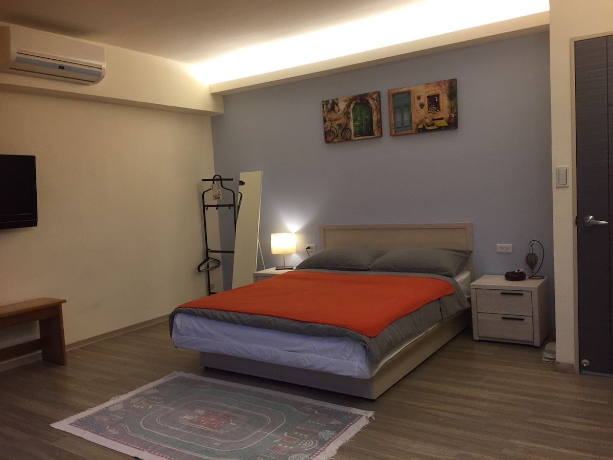 1. 房型 :獨立出入口、無電梯。 2. 設備 :冰箱、熱水壺、吹風機一應具全。 3. 地點 : 位於饒河街商圈,捷運松山站走路5分鐘、松山火車站2分鐘,旁邊也有付費停車場。 * Cozy and clean room with Great Location * 5 mins walk to Songshan MRT Station * Famous night market nearby for food, shopping and culture * One bathroom / One living room /One bedroom/ fridge/ washing machine * WI-FI in all areas 我們提供舒適、乾淨的品質以及一流設備,也希望您能保持良好狀況,像愛惜自己的住家一樣。