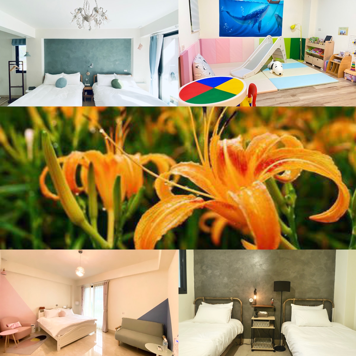 小提醒:包棟並非開放所有房間,會依收費人數開放房間、床位。公共空間都是開放的(提供1天份早餐食材,需自行料理) 訂房請按"佔床人數"訂房(4歲以上),依收費人數開放房間及準備床位、寢具、備品數量。未開放房間會鎖門,請勿進入 5-6人提供2樓4人親子房1間+雙人房1間(可自選房間);或雙人房3間 7-8人提供雙人房2間(可自選房間)+2樓整層4人親子房1間 9-10人開放所有房間 11-14人開放所有房間,提供1-4人加床的安排(加床另收費) *第11-14人安排加床,請選擇入住房間 201房 四人親子房(兩張標準雙人床)可再加2人(睡兒童遊戲區會再鋪睡墊) 301房 一張加大雙人床,可加1人(AJ2雙人沙發床) 302房 兩張 加大單人床(不可加人)。 401房 一張標準雙人床可加1人(10cm眠豆皮薄墊) *需要不一樣的房間安排,都可以討論