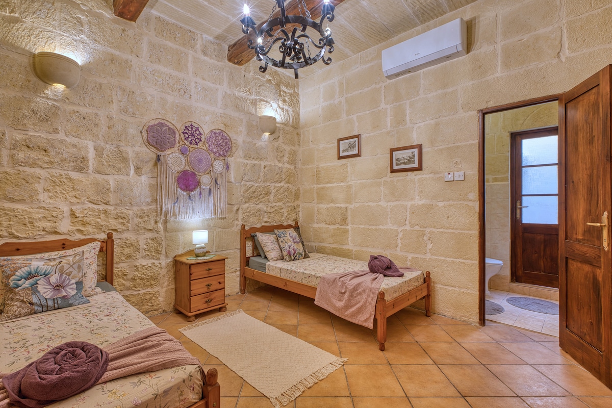 Within the narrow alleys of the old town of Victoria in Gozo is this 500+ year old house with private outdoor courtyard. All the amenities of the town (shops, restaurants/bars , supermarkets) are close by or only a short walk away. The alleys are traffic free and are therefore quiet and peaceful. The main bus terminus for the island is a 10 minute walk away. Victoria is at the centre of the island so it is easy to explore everywhere from here. Fully licenced by the Malta Tourism Authority (MTA).