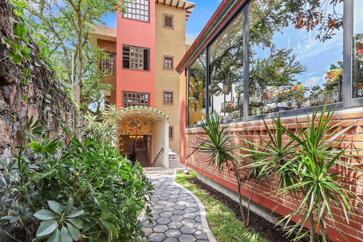 Esta encantadora habitación está construida en adobe, lo que le otorga un toque rústico y acogedor. El piso de barro, combinado con los detalles de mosaico de talavera en el baño, crea una atmósfera cálida y auténtica. Los roperos de madera apolillada añaden un aire vintage y lleno de carácter, mientras que las cenefas pintadas a mano adornan las paredes, reflejando la tradición y el arte local. Un espacio perfecto para quienes buscan una experiencia única y genuina.