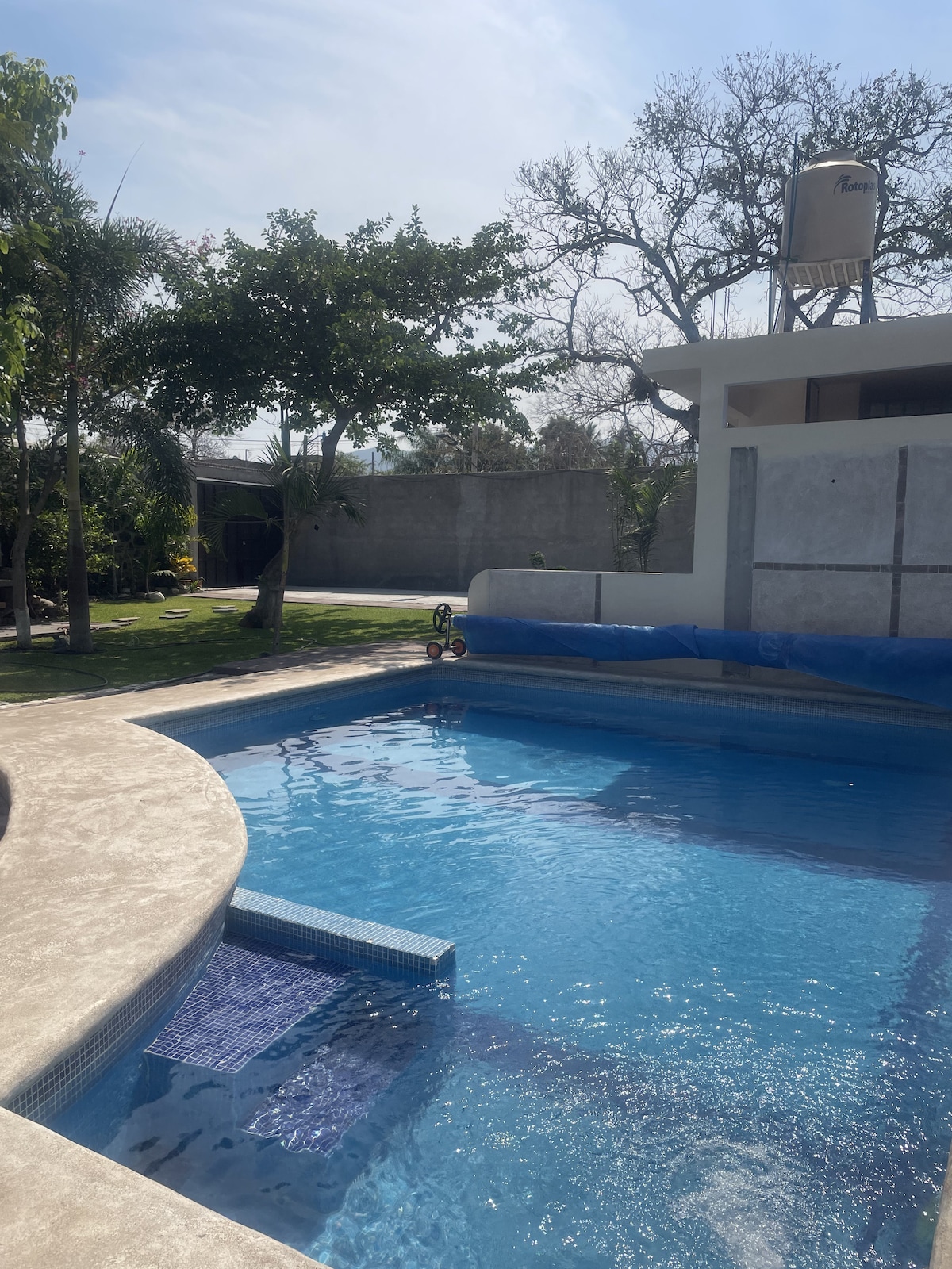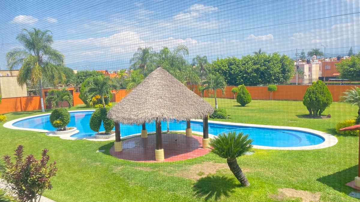 Encantadora Casa privada de descanso. Ubicada en una colonia muy tranquila fuera del bullicio de la ciudad, e inclusive en el camino te encontraras sembradíos de rosas, maíz, caña. La Casa tiene jardín con alberca, asador y fogata (no es compartida) para que pases en familia unos días a gusto. Cuenta con fogatero para bomboniza en las noches estrelladas en el jardín. Puedes visitar muy cerca, Jardines de México, Pueblos bonitos, Hacienda de Chiconcuac, Xochitepec, ruinas de Xochicalco, etc