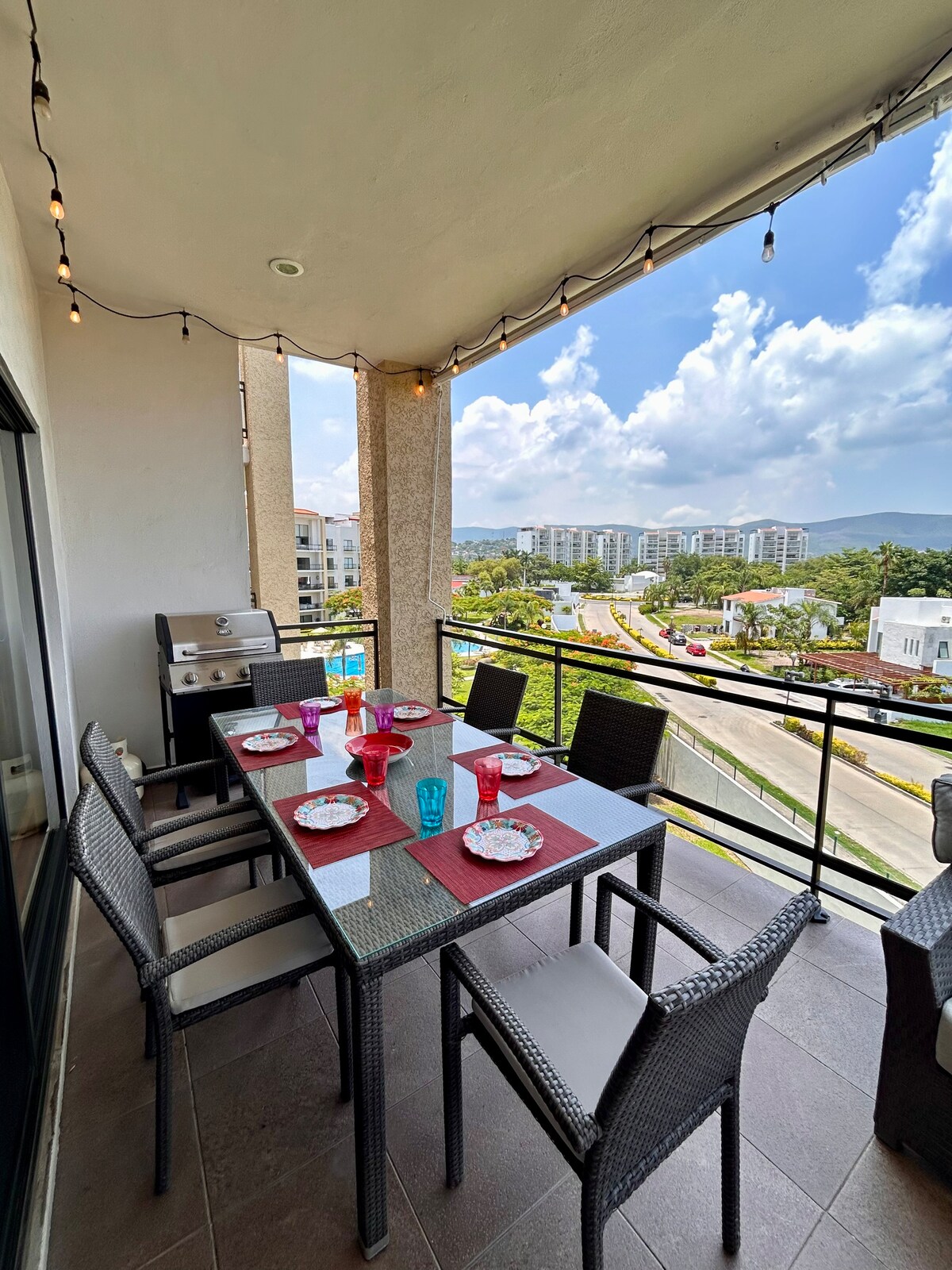Relájate con toda la familia en este alojamiento donde la tranquilidad se respira. Amarás este departamento con todas sus comodidades, pensado especialmente para un clima caluroso, con amplios y cómodos espacios, grandes ventanales y contacto directo con la naturaleza. Podrás disfrutar de sus albercas, de sus palapas con asadores en donde podrás comer, cenar o leer un libro, mientras disfrutas con tu familia y amigos de la vista de la montaña.