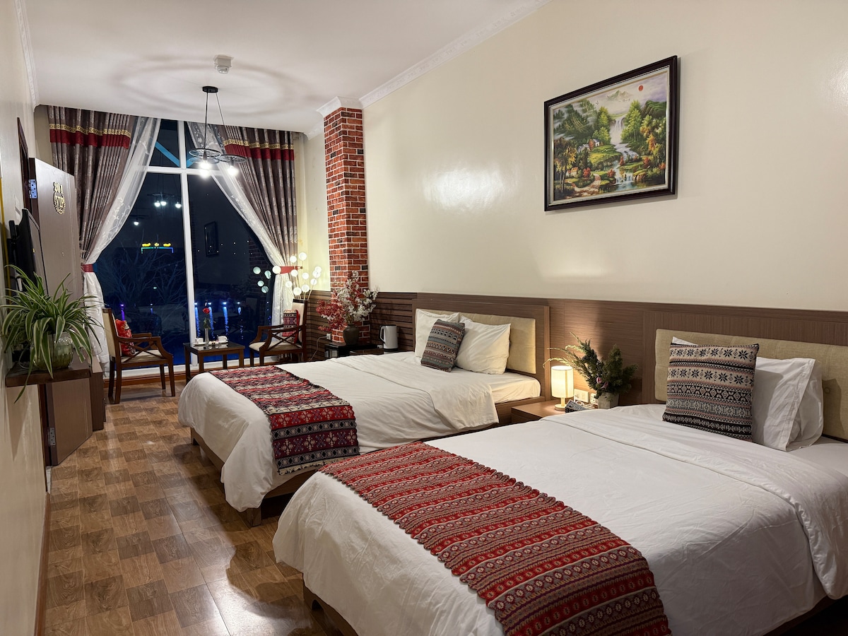 Enjoy your stay in our Deluxe Room, featuring a cozy atmosphere with tasteful décor. The room is well-appointed with complete amenities and a fireplace, creating a warm and inviting ambiance during cool mountain nights. From the window, you can admire breathtaking views of the majestic mountains and the peaceful of Can Ngai Valley 🌿