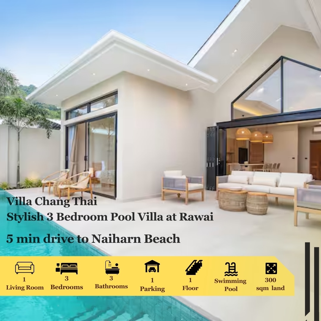 👫 Alan & Nuch invite you to our home; a tranquil villa nestled amidst lush tropical garden surrounding our large private swimming pool. 🏡 Our sole separate guesthouse is tastefully decorated in traditional Thai style, equipped with luxurious amenities for a comfortable stay, with no other guests on the property but us. 📌 Our location is safe and quiet yet conveniently close to beaches, restaurants, bars, shops, attractions and more. ⚠️ Please read all sections for important details !!