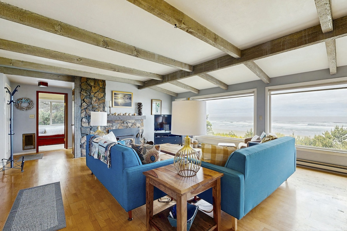 Experience the magic of the Oregon Coast in this freshly renovated oceanfront duplex cottage with gas fireplace, perfectly positioned on pristine Big Stump Beach. Step outside your door onto miles of sandy shoreline, where the rhythmic waves and coastal breeze create the perfect backdrop for your beach getaway. Inside, you'll find a thoughtfully updated interior featuring a fully equipped kitchen with modern amenities, including a dishwasher for effortless cleanup after seaside meals. The cottage accommodates up to four guests with a king bed in the bedroom and a full size sleeper sofa in a cozy TV nook off the living room. The covered oceanfront deck allows you to take in the sounds of the ocean while staying protected from the weather. The gas fireplace adds to the warm and inviting atmosphere throughout your stay. Your Perfect Base for Coastal Adventures: North to Waldport (minutes away): Dive into authentic coastal activities like crabbing from Dock of the Bay or McKinley's Oregon Coast Marina. During low tide, try your hand at clamming near the bridge. South to Yachats (just a few miles): Discover charming restaurants and explore remarkable rocky tidepools along the dramatic coastline. Further Explorations: Visit the fascinating Newport Aquarium (30 minutes north) or embark on an adventure at the Sand Dunes (45 minutes south) - accessible by foot, ATV rental, or guided tour. Traveling with a group? Cape Cod Cottages features eight additional units on the property, perfect for family reunions or friend gatherings. Shared amenities include: 300 feet of private beach access Entertainment-ready game room featuring foosball and ping pong Free guest laundry facilities Three EV charging stations