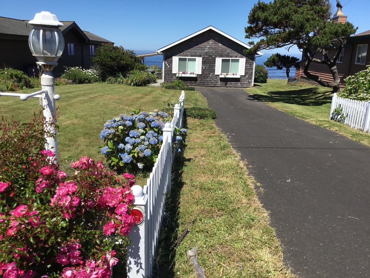 The Blue Pearl is calling. 1946 coastal cottage nestled just above basalt rocks offers you a relaxing place to take in the sites and sounds of the crashing waves. Located next to the 804 walking coastal trail and also the Amanda trail leading to the Amanda Grotto and Cape Pepetua. Cottage is located on the south end of Yachats and a short distance to sandy the sandy beach at Yachats Bay.