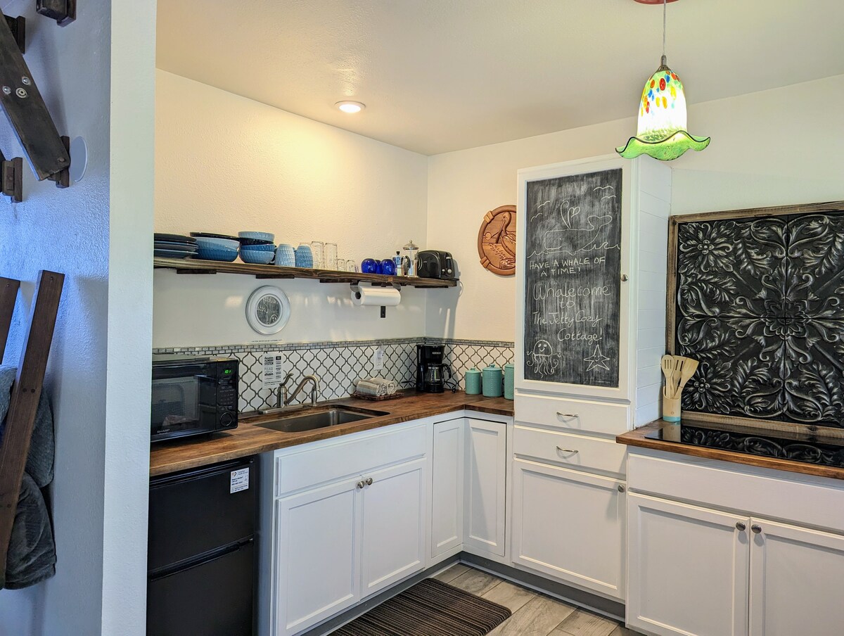 Step into a timeless retreat and prepare to be in awe of the great pacific ocean. Watch eagle soar, whales pass by, seals swim, waves form and break, sunsets, and if you're lucky watch the commercial crabbing vessels brave the open waters. The cottage is a gem with a gorgeous panoramic view. Time tends to slow, bodies relax, and memories are made in this ocean cottage retreat.
