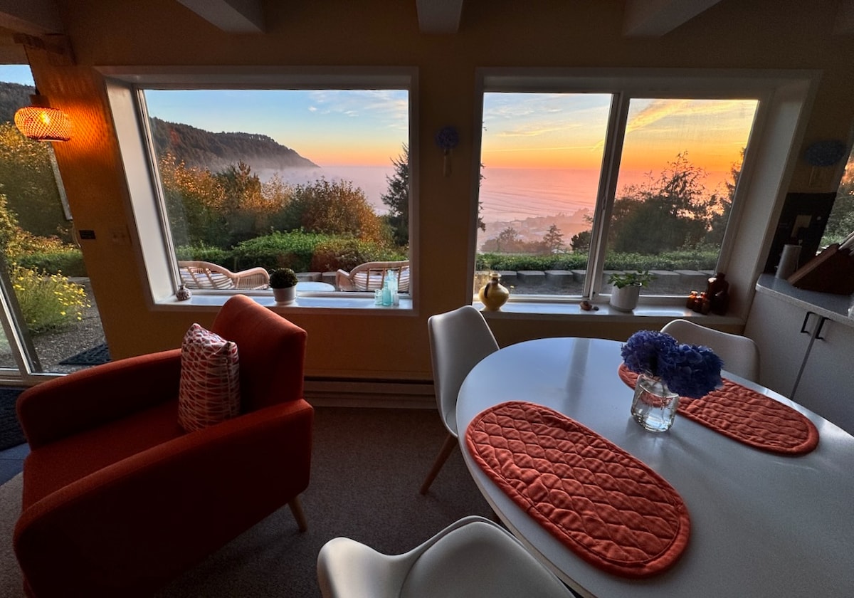 If are looking for comfy home with a stunning ocean view within walking distance of Yachats restaurants and shops, our house is for you! Watch the waves roll in, the sun set, the birds fly by, and occasionally whales and sea lions from our comfy home. Hunt for agates on the smelt sand beach and explore the tide pools just in front of the house, walk down the nearby 804 trail to an 8-mile sandy beach, or head to nearby Cape Perpetual for a hike.