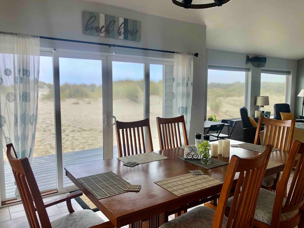 BAY/BRIDGE DECK TO SEE SUNRISE - BACK DECK TO SEE SUNSETS! GET TO THE BEACH! It is spectacular! What can I say? You will literally step off the back deck and you on the sand! This awesome home is ocean front with direct beach access and peek a boo ocean views. Sunsets are incredible and the beach is wide open for exploring. Comfortable and Cozy ~and your well behaved family dog is welcome! The home is spacious, cozy, clean...tons of amenities.
