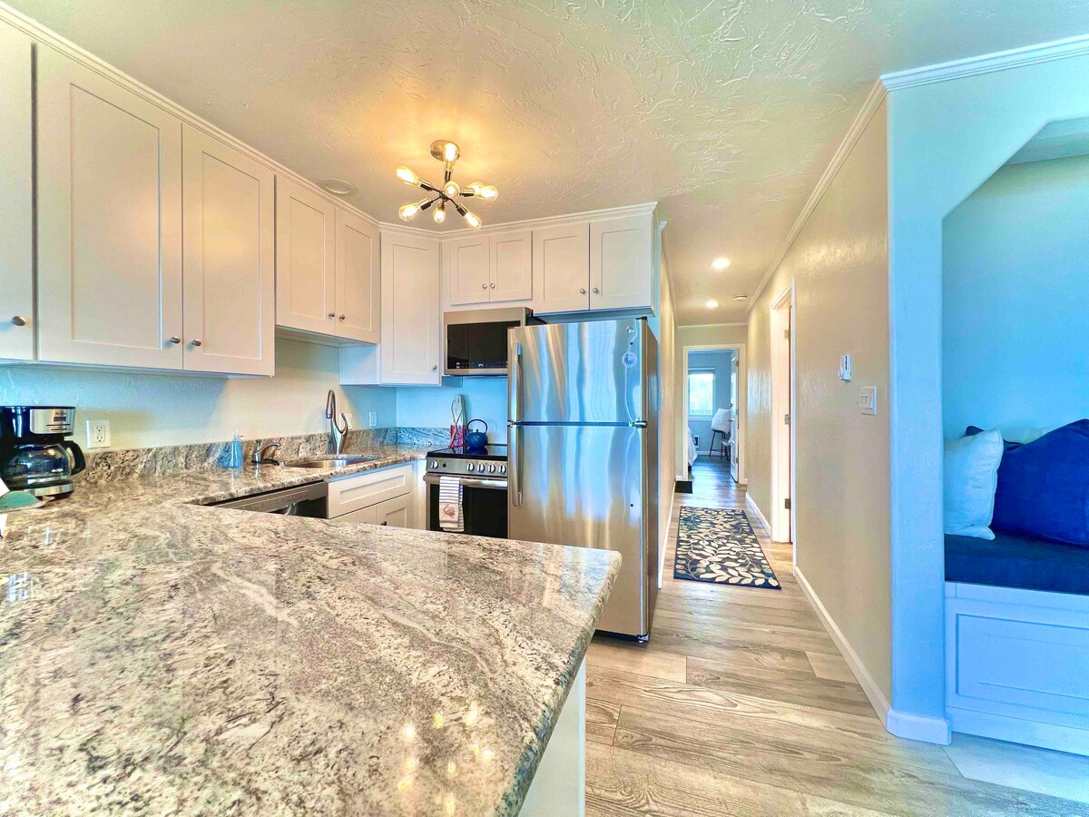 Experience the magic of the Oregon Coast in this freshly renovated oceanfront duplex cottage with gas fireplace, perfectly positioned on pristine Big Stump Beach. Step outside your door onto miles of sandy shoreline, where the rhythmic waves and coastal breeze create the perfect backdrop for your beach getaway. Inside, you'll find a thoughtfully updated interior featuring a fully equipped kitchen with modern amenities, including a dishwasher for effortless cleanup after seaside meals. The cottage accommodates up to four guests with a king bed in the bedroom and a full size sleeper sofa in a cozy TV nook off the living room. The covered oceanfront deck allows you to take in the sounds of the ocean while staying protected from the weather. The gas fireplace adds to the warm and inviting atmosphere throughout your stay. Your Perfect Base for Coastal Adventures: North to Waldport (minutes away): Dive into authentic coastal activities like crabbing from Dock of the Bay or McKinley's Oregon Coast Marina. During low tide, try your hand at clamming near the bridge. South to Yachats (just a few miles): Discover charming restaurants and explore remarkable rocky tidepools along the dramatic coastline. Further Explorations: Visit the fascinating Newport Aquarium (30 minutes north) or embark on an adventure at the Sand Dunes (45 minutes south) - accessible by foot, ATV rental, or guided tour. Traveling with a group? Cape Cod Cottages features eight additional units on the property, perfect for family reunions or friend gatherings. Shared amenities include: 300 feet of private beach access Entertainment-ready game room featuring foosball and ping pong Free guest laundry facilities Three EV charging stations