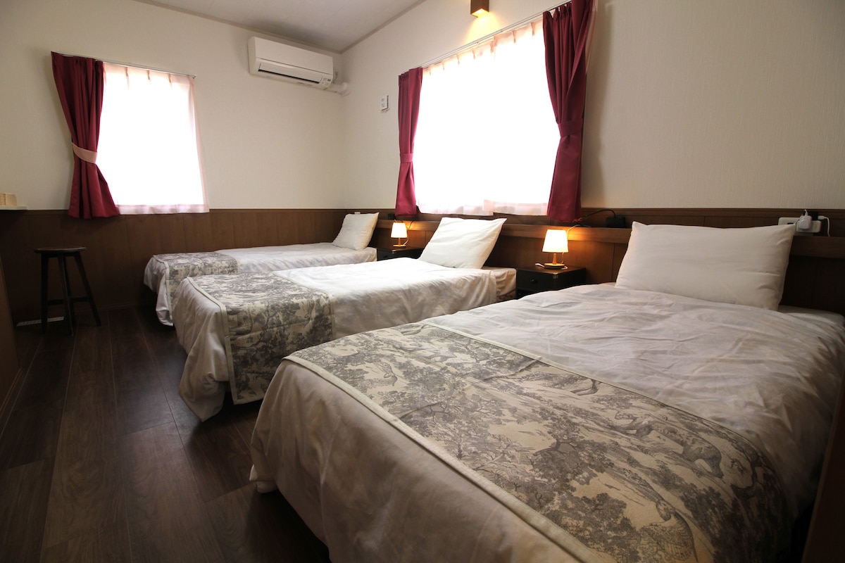 A fully renovated house in a peaceful residential area. The three bedrooms are divided by doors, allowing multiple family members to stay in privacy. The fully equipped kitchen is equipped with a gas BBQ grill. Located just a 30-sec walk to the popular cafe "PARAMITA", a 2-min walk to the supermarket, and a 3-min drive to the convenience store. The interior is decorated with a selection of furniture and accessories of various nationalities, a unique, stateless atmosphere.
