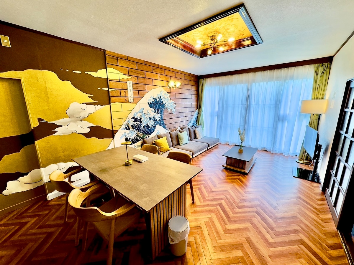 NEW|成田羽田アクセス良好|北斎壁画|広々85㎡|最大10名|駅5分|スーパー30秒|浅草7分|