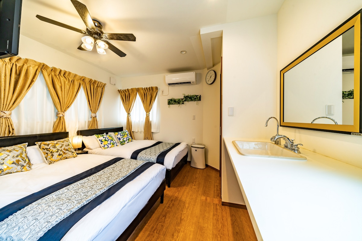 Welcome to the page of Hotel 春夏秋冬 "Shunkashuto" Sakura! Newly built designer house (110㎡) available for exclusive rental from December 2024. Free parking available. High-speed fiber-optic Wi-Fi included. Spacious 4-bedroom house - Equipped with 4 double beds and 2 single mattresses - Perfect for private stays of up to 10 guests Enjoy a comfortable and luxurious stay at Hotel 春夏秋冬 Sakura!