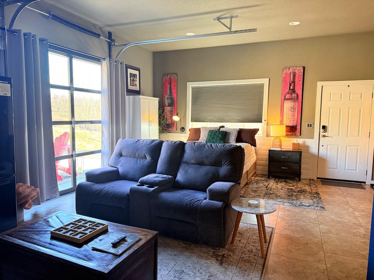 Welcome to Cabernet Hill, a private hilltop studio guesthouse overlooking fruit orchards and Mount Adams. Located just minutes from local wineries, this peaceful retreat is perfect for couples or solo travelers looking to relax and unwind. Enjoy your private patio with fire table, stunning panoramic views, and a fully equipped kitchen, bathroom, and washer/dryer for a comfortable countryside stay.