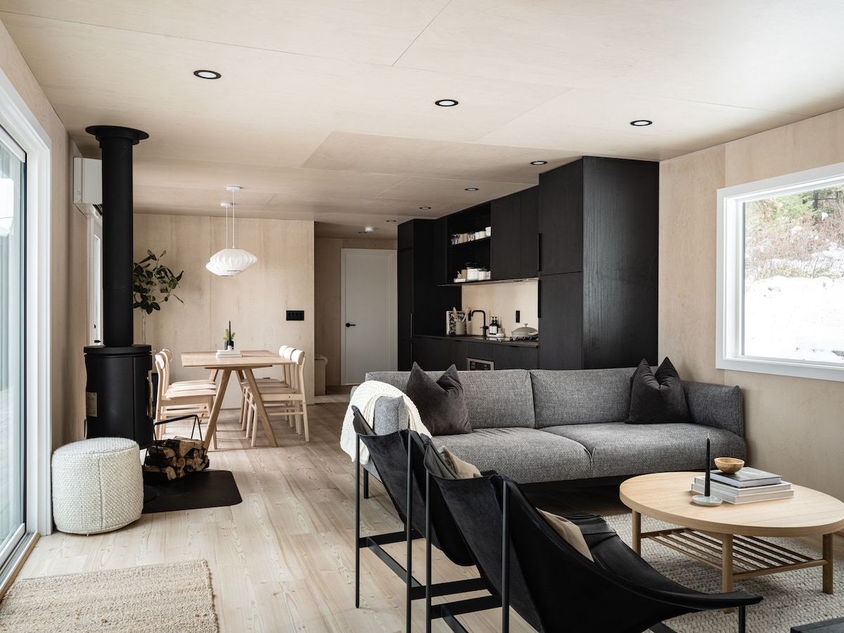 山灰色度假屋,步行5分钟即可抵达村庄。