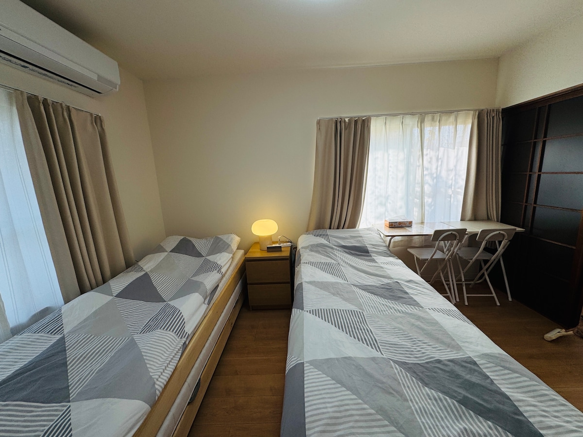 About 12 minutes walk from Hakata Station★About 8 minutes by car from Fukuoka Airport★Free Wi-Fi★Perfect base for sightseeing in Kyushu★Ideal for a group trip of 3 people★Host is a travel planner & Japanese teacher★1 double bed & 1 single bed★NETFLIX & YouTube★Auto-lock entrance & safety★No elevator, stairs to use★Our facility is also featured in the video of the Fukuoka trip posted on YouTube by "@Hoonfeelm", who stayed at our facility. Please enjoy.