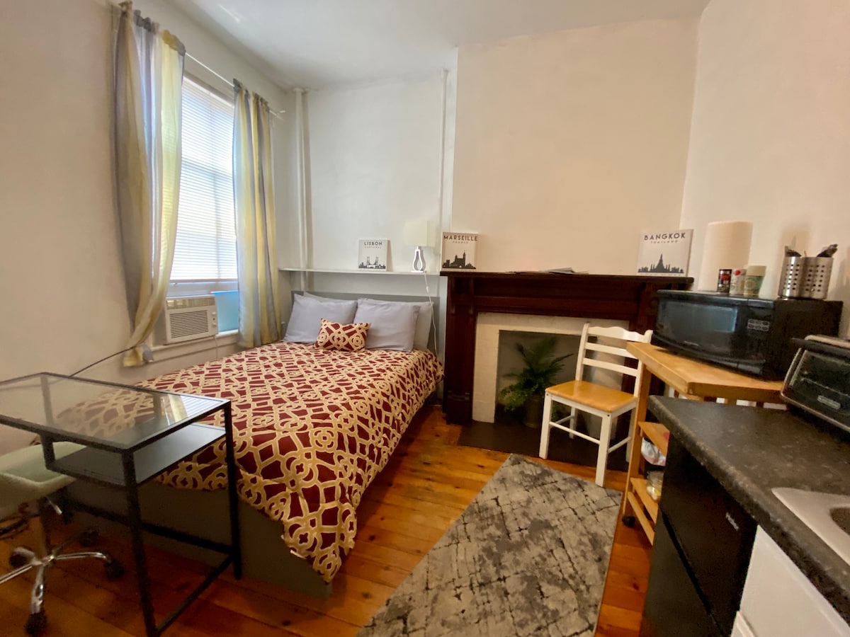 This studio unit is located in a New Haven brownstone. It is small, but has everything you need: a double bed, a small fridge, microwave, toaster oven, kettle, and includes dishes and utensils. You have a private tile bath with shower. This is a second floor unit. It has free Wi-Fi. Off-street parking by request. Close to Yale, two blocks to SOM, New Haven pizza, and cozy coffee shops. A really nice, quiet, safe space. Self-check-in. A coin washer and dryer are available in the basement
