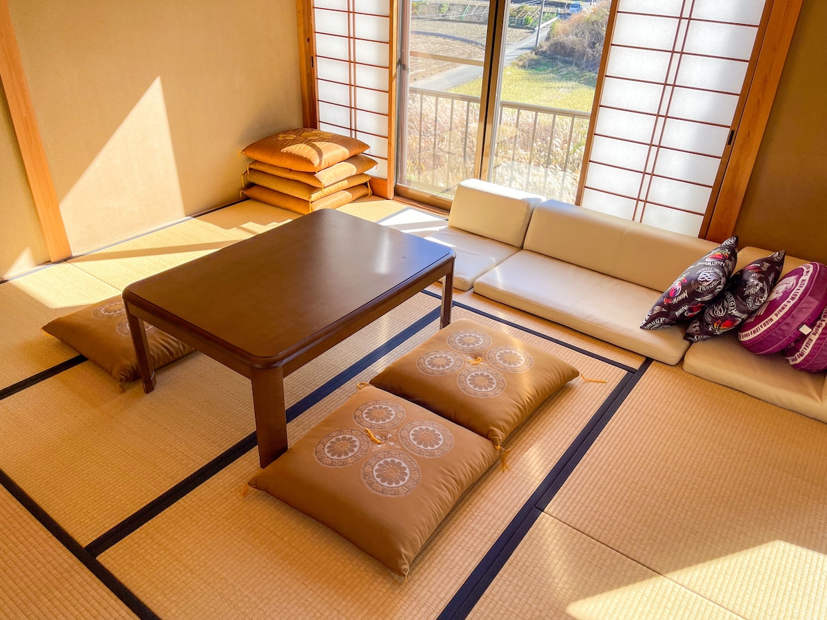 大人数のお客様も大満足!大学生の卒業旅行にも大人気! 新宿から車でわずか70分。 中央自動車道都留ICから車で3分の好立地は富士山や河口湖・富士急ハイランドへも車で20分! 近隣にはスーパーやドラッグストアー、コンビニエンスストアもあります! 11名様までの大人数対応スペースは古民家和室36畳とおしゃれ洋室36畳の広々スペース! もちろん全館無料Wi-Fi、冷暖房完備! お庭でBBQは定番です!雨の日も安心、屋根付きBBQコテージ完備!(BBQグリルの貸し出しは12月から2月の間はできませんので、お客様でご用意ください) 広々したお庭で親子で楽しく遊べます!昼間はバトミントンやキャッチボール、夜は満天の星を見ながらファイヤーピットで焚き火もOK! 手持ち花火で盛り上がるものもOK! (古民家和室) 夏は縁側でスイカを頬張るも良し! 冬はみんなで炬燵を囲んで鍋料理も良いね! お仕事スペースも完備! (おしゃれ洋室) シネマプロジェクター完備! ギター等もあるから音楽好きも楽しめます! ネットで映画なども観れます! 山梨県富士・東部保健所 | 山梨県指令富東福第11000号