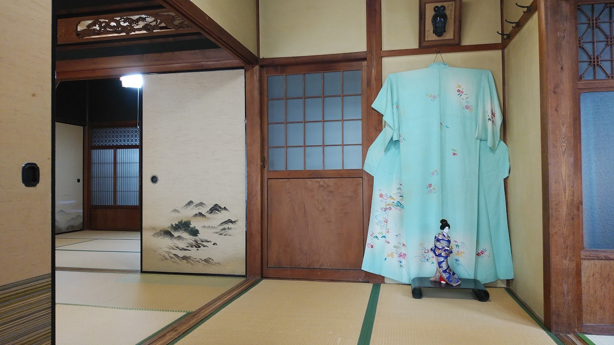 古民家的旅馆“柏木屋”,宽敞的纯日式独栋别墅,展示美丽的庭院和日本人偶和和服,距离车站3分钟