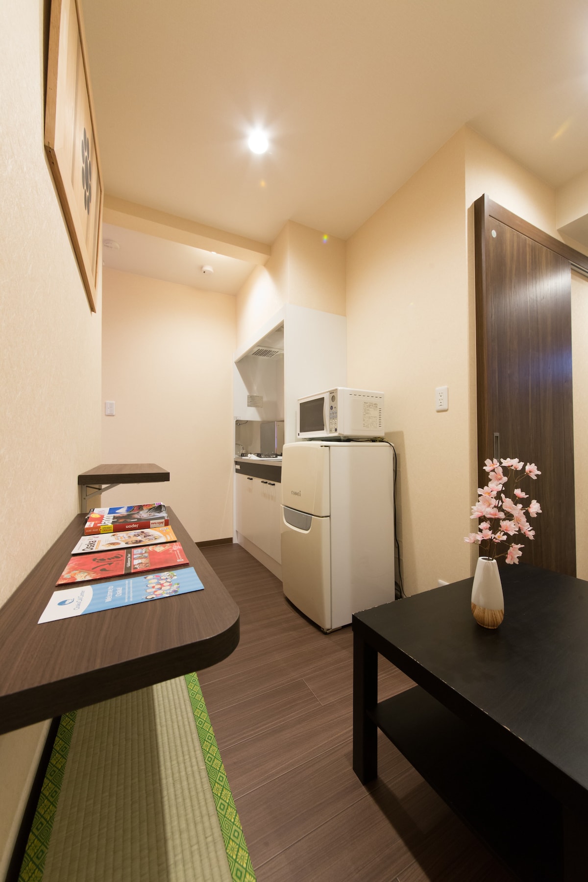房源位于大阪今宫附近的民宿,位置优越、生活便利,步行4分钟即可到达JR今宫站,前往难波、心斋桥、通天阁、新世界等热门景点只需几站电车,非常适合来大阪自由行的旅客。周边有便利店、超市、餐馆和本地小吃街,生活氛围浓厚,是体验大阪本地风情的好选择。 民宿房型日式与现代的结合设计,适合情侣、小家庭或朋友团体入住。房间内配备厨房、简单厨具、微波炉、洗衣机和阳台,让您在旅途中也能享受家的感觉。客房整洁宽敞,布置温馨,房间内提供的阳台,适合晒衣服或简单休憩,别适合中长时间停留。 我们致力于提供安静、安全、舒适的住宿环境,入住前会提供详细的自助入住指引,也欢迎提前与客服联系,我们会尽力根据您的需求安排适合的房型。无论您是短暂停留,还是计划深入探索大阪的城市魅力,这里都会是一个性价比极高的住宿选择。