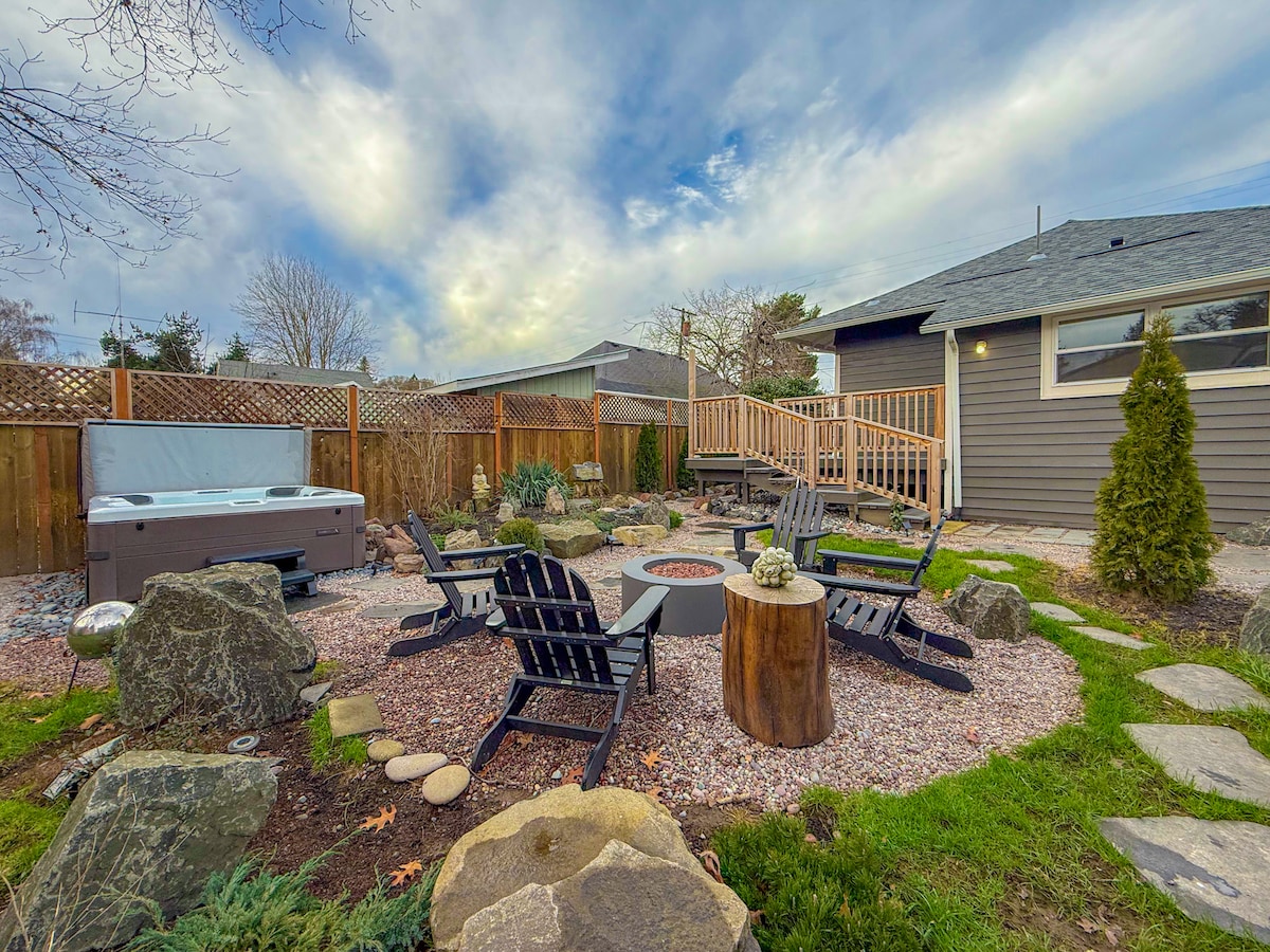Escape to an oasis of relaxation with a glass of wine in our luxurious hot tub! Enjoy starry nights while sipping your favorite wine, or unwind after a day of exploring local wineries. Our inviting studio basement apartment offers a cozy fireplace and full kitchen. Roast marshmallows by the fire pit, then slip into the warm bubbles of our hot tub. This is the perfect retreat for wine lovers seeking tranquility in the heart of Oregon's wine country. Book now and savor the taste of Dundee!
