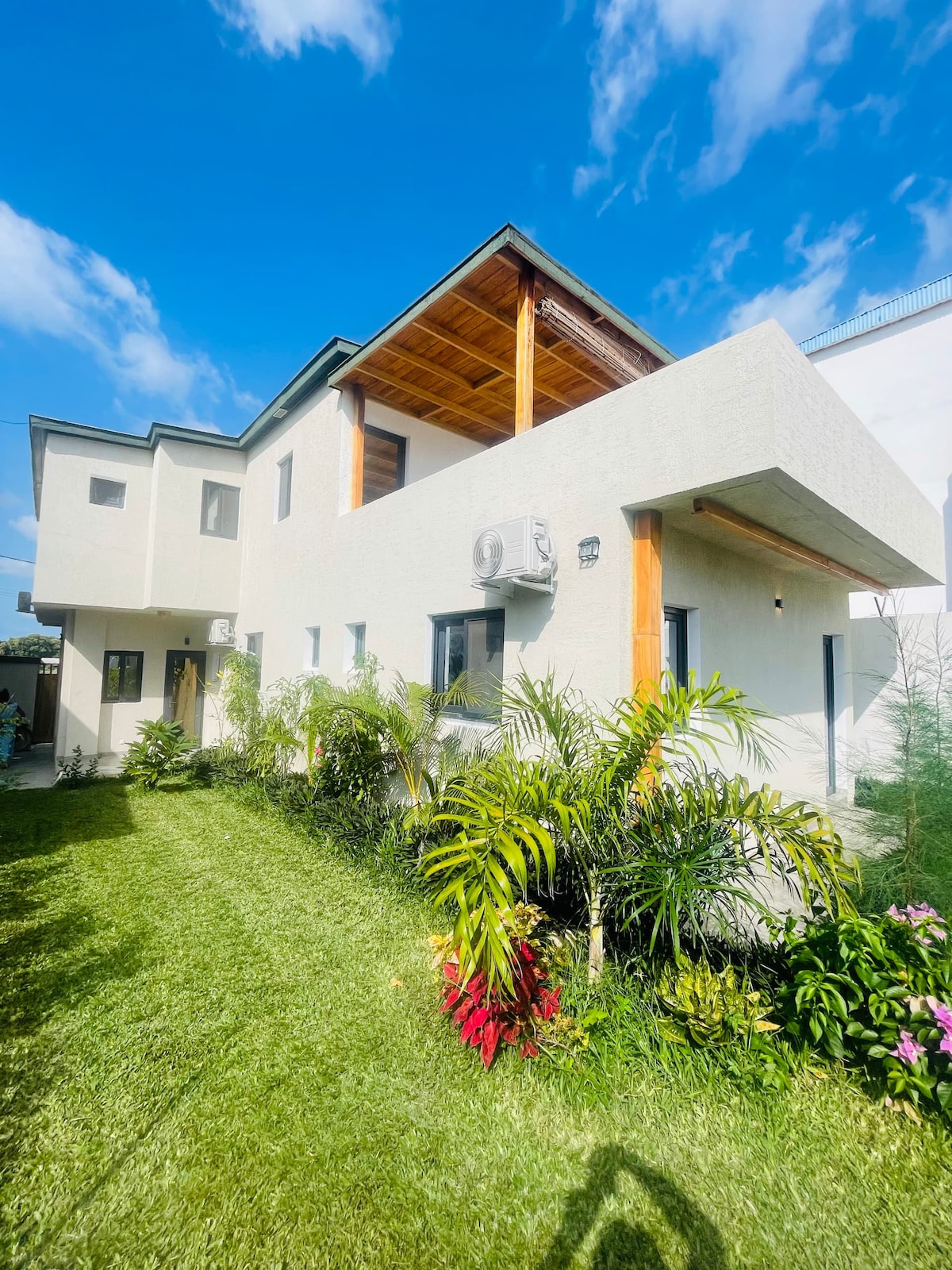Amusez-vous avec toute la famille dans ce logement très chic. - 3 chambres autonomes avec climatisation et TV connectée 43" - 1 grand salon avec TV connectée 55" et 1 salle à manger, avec climatisatisation - 1 salon secondaire en haut avec TV connectée 43" et accès à un grand balcon (pour vos apéros et soirées en plein air) - Cuisine entièrement équipée - Accès internet FTTH 200Mb/s - Groupe électrogène - Citerne d'eau 1m³ avec suppreseur