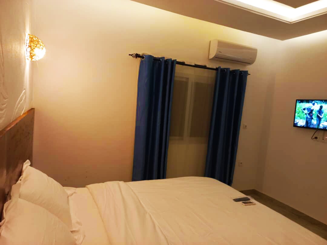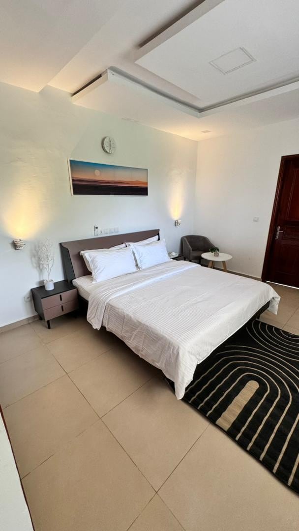 Cette chambre est parfaite pour un séjour agréable à Yamoussoukro. Équipée d’un lit queen-size, d’une climatisation, ainsi que de tout le nécessaire pour un séjour agréable. Idéale pour les voyageurs souhaitant explorer la ville ou se détendre dans un cadre tranquille, cette chambre vous offre un espace privé et confortable à quelques minutes des attractions principales de Yamoussoukro. Le petit-déjeuner est disponible sur demande pour bien commencer la journée.