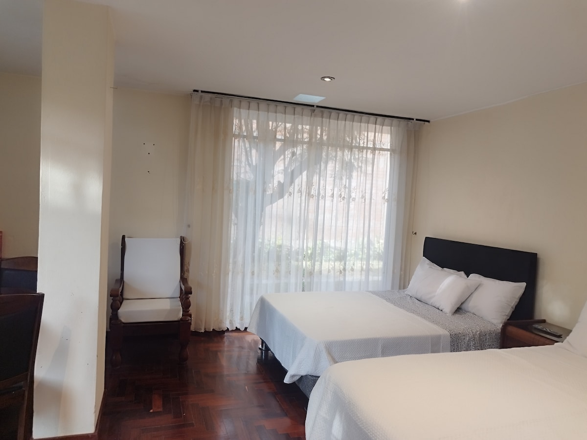 Este alojamiento es único, Penthouse ubicado en el ultimo piso, 13, departamento confortable e inmenso 230 m2, remodelado, ubicado en un condominio con vigilancia las 24 horas, rodeado de la natureleza y diversas areas libres. Queda a 12 min del centro histórico, cerca a los principales malls. Internet Veloz (Fibra Óptica 1000 Mbps), tiene mucho espacio para que disfrutes con los tuyos. Estacionamiento free. Feliz estadia desde ya.