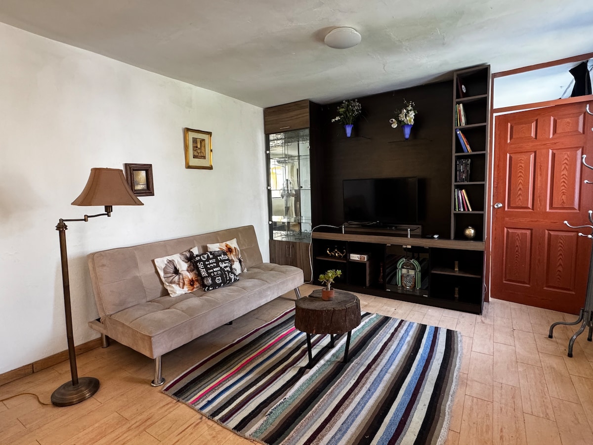 Cozy suite with amazing views in historical Yanahuara district. Perfect for a couple, 3 friends or a family of up to 4, looking for luxury and security. Enjoy a gourmet kitchen, huge terrace with outdoor living and dining room, steps from Plaza Yanahuara. Toys, books and small pool for the little ones to enjoy. Maps and recommendations for guests. We are located on a private gated street, with 24/7 security and a quiet that is a rare experience in bustling Arequipa.