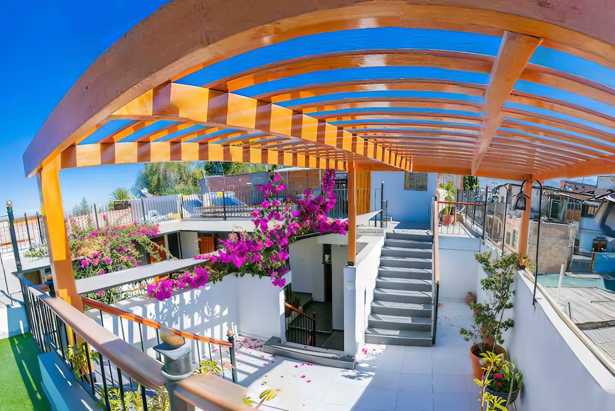 Es una habitación con cocina y baño privado dentro de una casa de arquitectura colonial y moderna ubicada en un barrio tradicional y seguro. Contamos con un patio común con bancas y vegetación, y una hermosa y amplia terraza con una hermosa vista. Estamos a 8 minutos a pie de la Plaza de Armas y a 5 minutos del monasterio de Santa Catalina. También estamos cerca de la plaza de Yanahuara, clínicas, farmacias y bodegas. CHECK IN: de 13:00 - 19:00 hrs. - CHECK OUT 10:00 hrs.