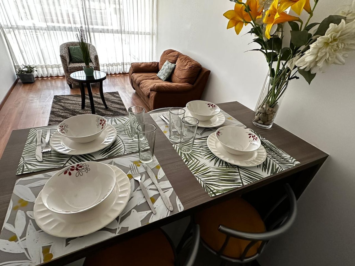 Full apartment just 1 block from the Main Square — perfect for families, couples, or groups of friends who want to stay in the heart of Arequipa, close to supermarkets, restaurants, museums, churches, and all major tourist attractions. It features a living room with 58'' Smart TV, WiFi, sofa bed, fully equipped kitchen, laundry area, 2 bedrooms, and 2 full bathrooms. Everything you need for a comfortable stay in a top location.