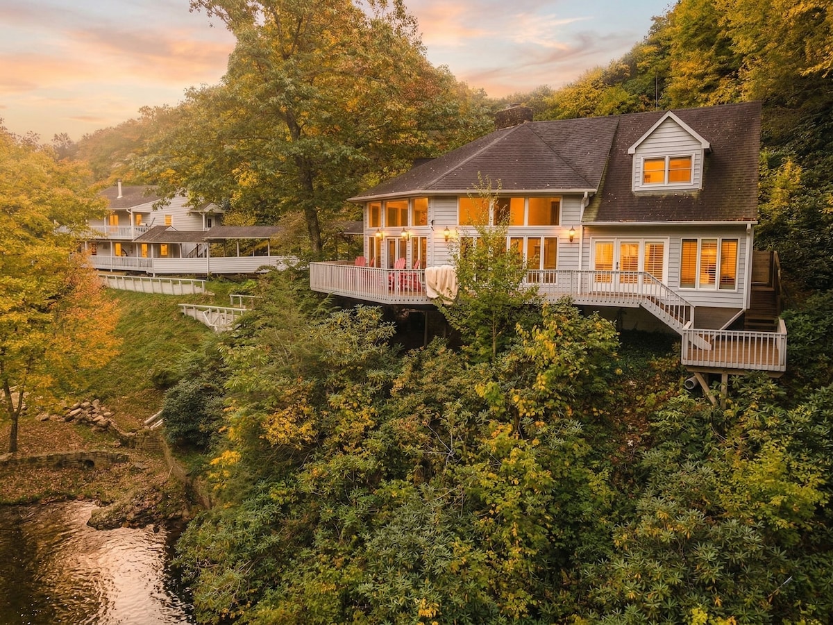 Escape to a 22-acre private riverfront estate on the South Toe River. Features 1,000ft of frontage, a secluded sandy beach, and miles of private hiking trails. Unwind in the 7-person hot tub, fly fish your backyard, or relax on sunset decks. Inside: Modern kitchen, Starlink WiFi, and soaring windows. A rare sanctuary for families and pets seeking total privacy, off-leash freedom, and river adventures.