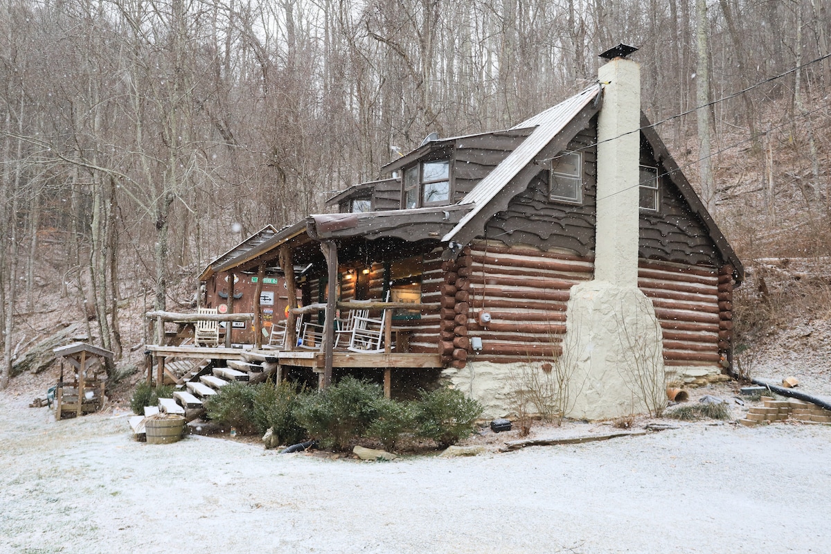 Experience the mountains of Asheville like never before in this one of a kind cozy 2-bedroom, 1-bathroom vacation rental cabin just 25 mins from downtown Asheville! Located at the top of a mountain on 16 private acres with awe-inspiring views, this historic cabin has been renovated to ensure you will have a vacation like no other. Whether you spend your days exploring Asheville, relaxing on the porch, gathered around the fire pit, or hiking in nature, you're sure to have an unforgettable stay!