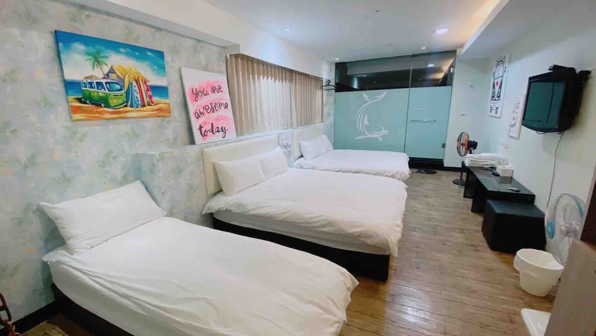 家庭房ㄧ雙床加一小床|獨立衛浴|近鹽埕埔捷運站、愛河、駁二