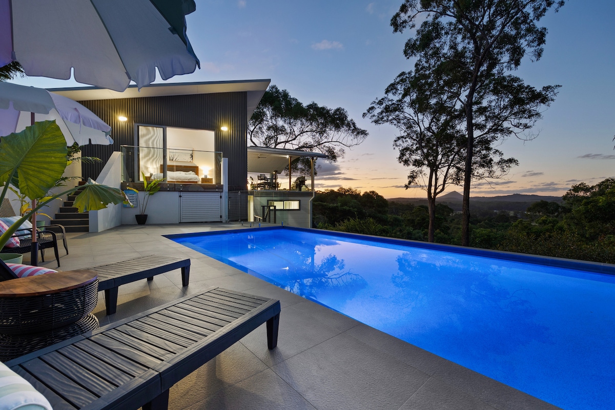 Enjoy the nature, ambiance, the outdoors space, and modern eco-friendly features in a secluded area just minutes from the beach.. Built in late 2016, Treeview is designed and built on sustainability principles from the roof to the organic cotton sheets. It is nestled on a 30 acre property and so close to the Coast's attractions - Coolum Beach (8 mins), Noosa Heads (20mins) and Eumundi (12 mins). We do welcome your dog and can even accommodate your horse by prior arrangement.