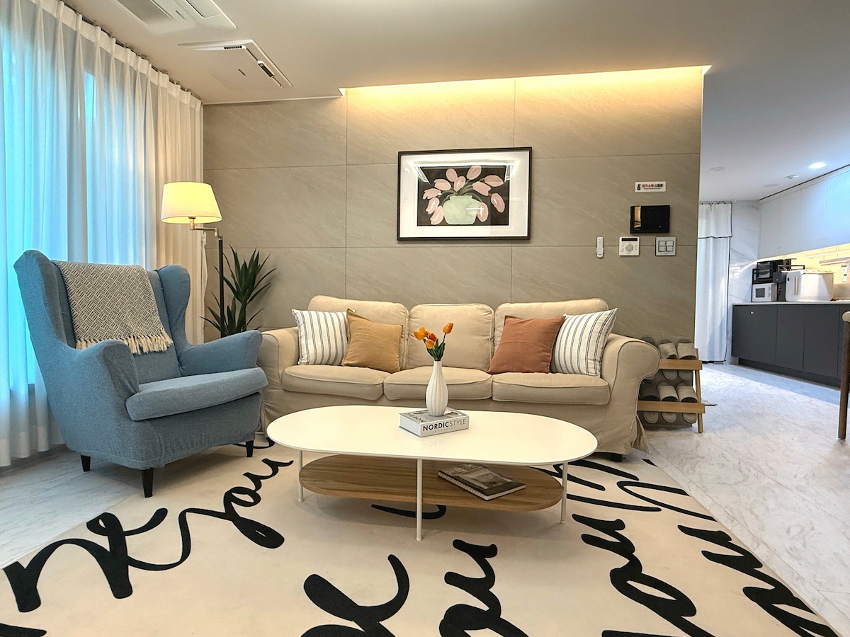 排名前 5% 好评房源/酒店床上用品/电视/有停车位/最多入住 7 人/4 张床/3 间客房/2 间卫生间/步行 5 分钟即可抵达延信内역